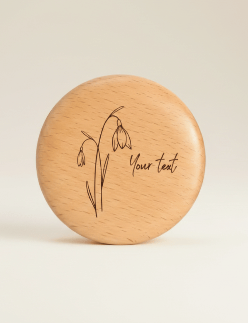 - Bespoke Floral Sentiment: The wooden back is specifically designed to feature your name alongside a delicate “Birthday Flower” motif, creating a unique and deeply personal keepsake.