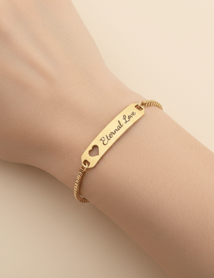 Wear your story with a touch of radiant elegance. This 18K gold-plated bracelet blends a modern minimalist aesthetic with a delicate hollow heart detail, creating a piece that feels both organic and high-end. It is a thoughtful way to keep a name, date, or secret message close to the pulse, transforming a simple accessory into a lifelong treasure.