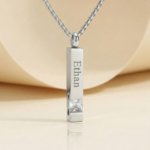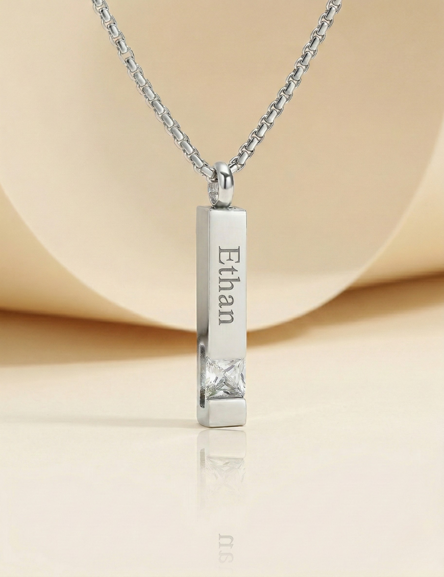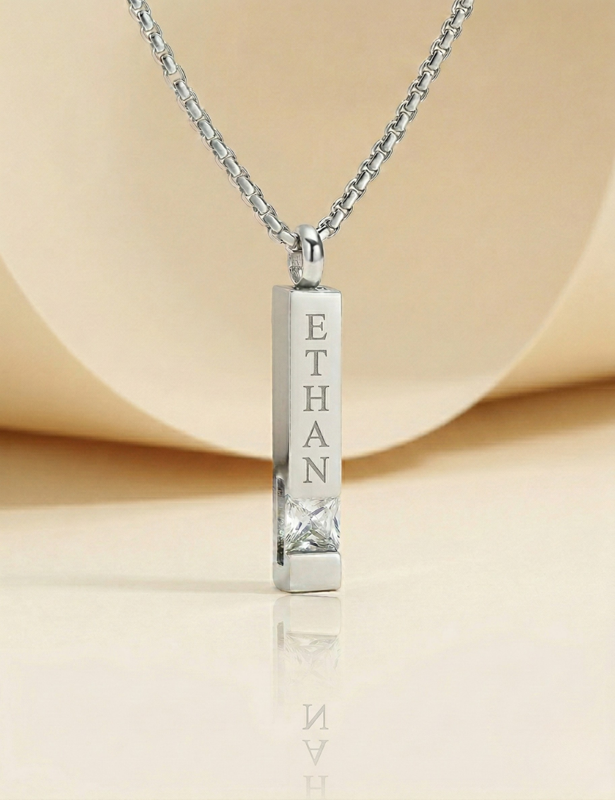 Deep Laser Personalisation: Your name or a significant date is expertly etched vertically along the pendant, creating a deep, permanent mark of remembrance.