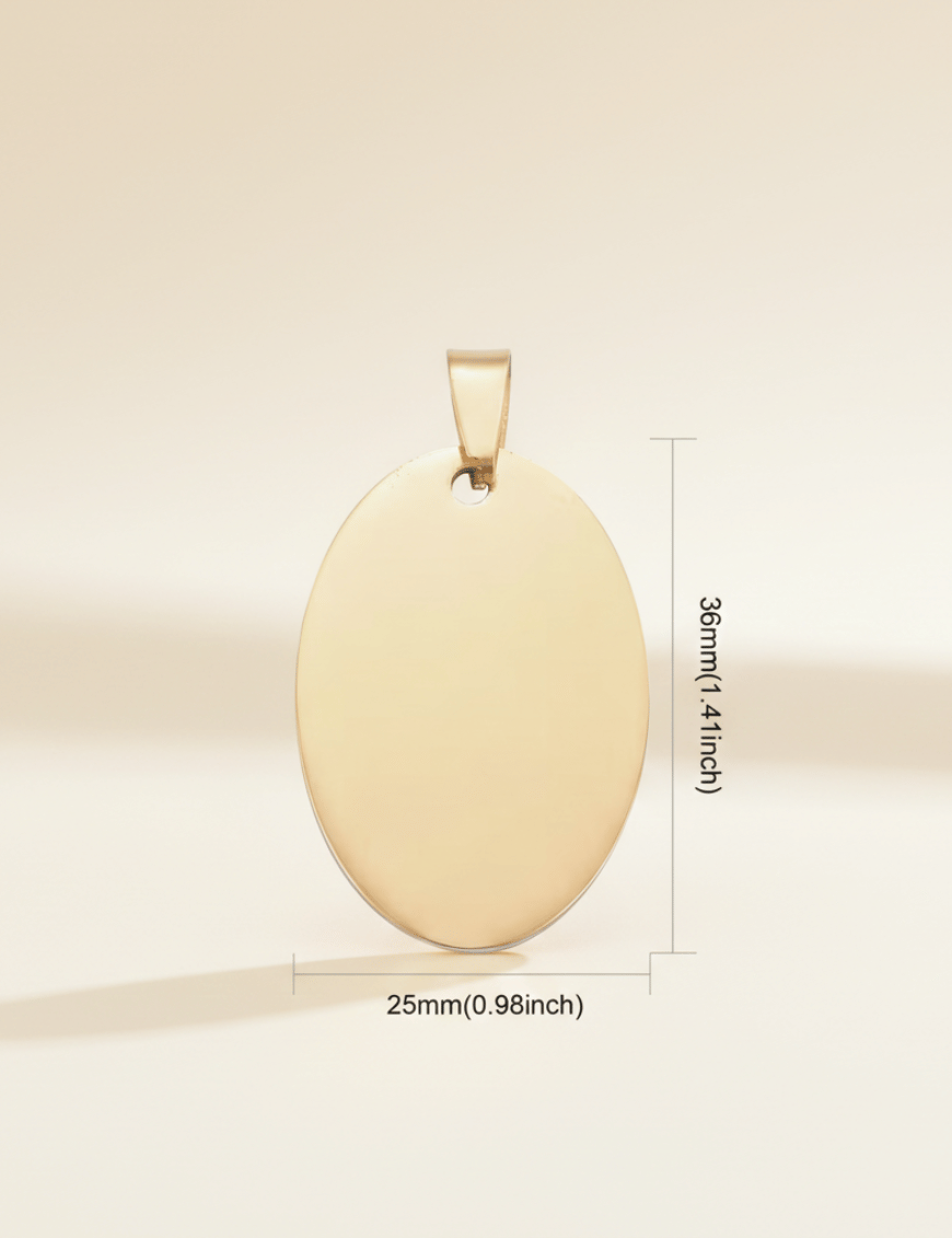 Timeless quality meets incredible value. For just £10.00, you receive a premium oval pendant in your choice of finish, with high-definition engraving included at no extra cost. We believe in transparent pricing for a gift that lasts forever.