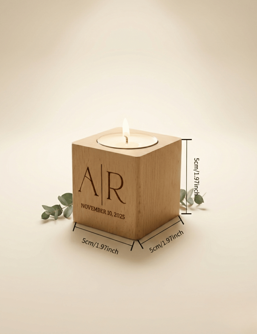 Illuminate your most cherished memories with a flicker of light. Hand-finished from solid natural wood, this cubic tealight holder brings an organic, rustic soul to any setting. Whether it’s marking a proposal or a milestone anniversary, its unique wood grain ensures your sentimental gift is as timeless as the flame it holds.