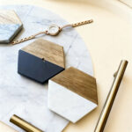 Sophisticated Mixed Materials: By combining polished marble with natural timber, these coasters provide a high-end, heavy feel that serves as a stunning luxury accent for any room.