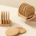 - Space-Saving Vertical Storage: The set includes a matching slot-based wooden rack, allowing you to store your coasters vertically to keep your surfaces elegant and clutter-free.