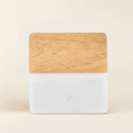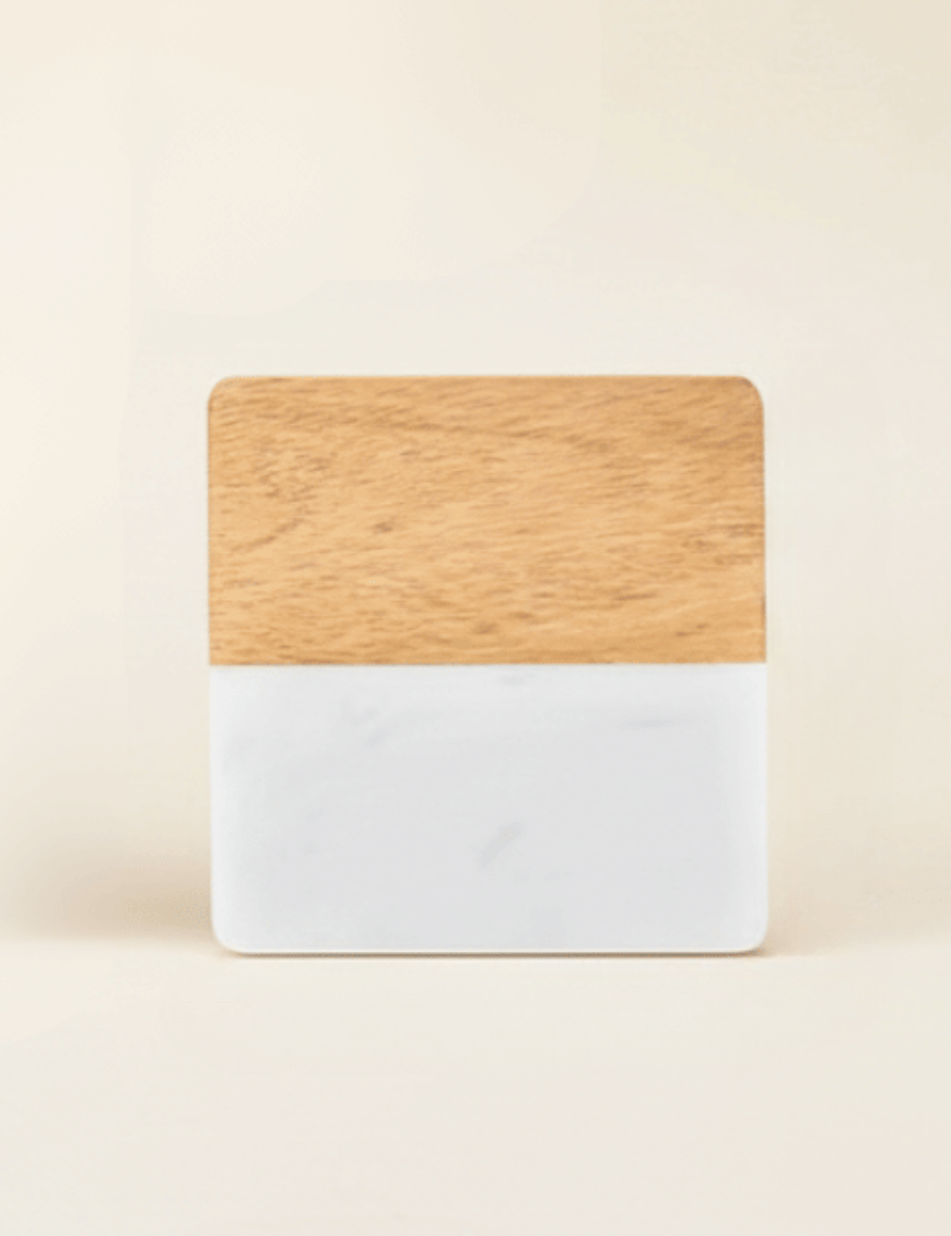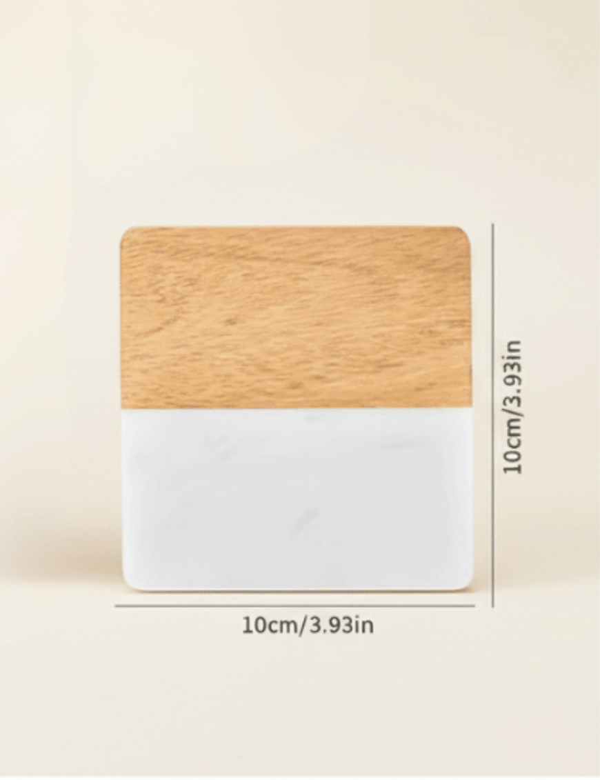 The ultimate statement piece for the modern home. Combining the earthy, organic warmth of premium natural wood with the cool, sophisticated touch of polished marble, these hand-finished Square coasters are a masterclass in texture and symmetry. Each piece is a unique keepsake, designed to bring a touch of thoughtful elegance to your coffee table or home bar.