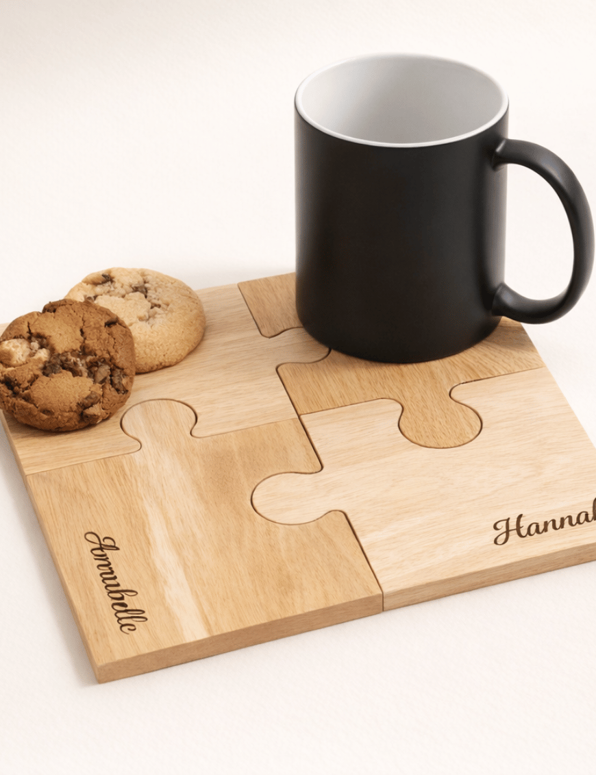 - Build Your Set: If buying multiple pieces, list each name clearly so they can be engraved on separate interlocking coasters.
