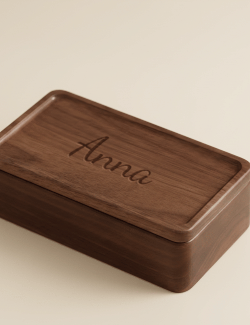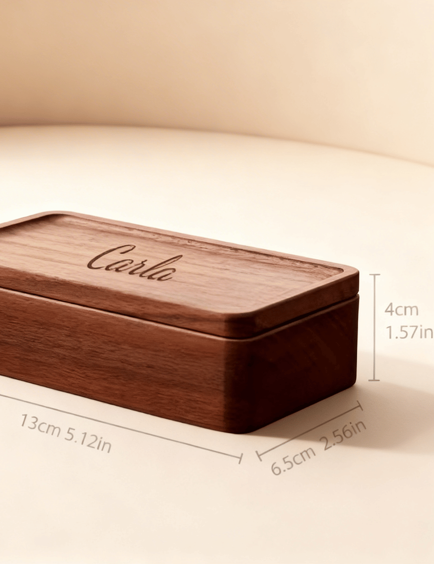 Capture the essence of timeless elegance with a piece that honors your most cherished treasures. Carved from premium solid walnut with a deep, soulful grain, this hand-finished keepsake provides an organic sanctuary for delicate rings and earrings. It is more than a storage box; it is a thoughtful vessel for memories, designed to sit beautifully on any vanity for a lifetime.