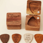 • Cohesive Personalised Design: Both the pick and the slide-top box feature matching custom engravings, creating a coordinated and high-end aesthetic that stands out on any stage or studio desk.