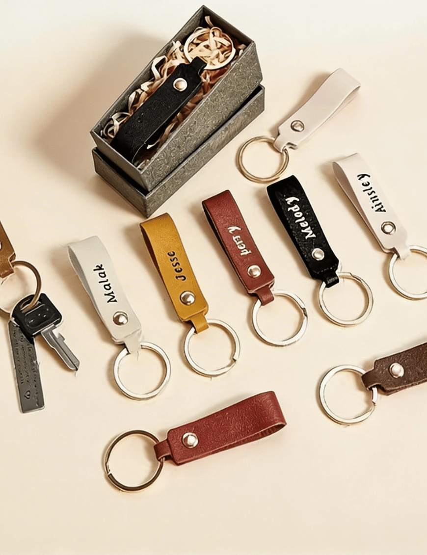 Elevate your everyday carry with a touch of modern sophistication. These hand-finished faux leather keychains combine the organic feel of a classic keepsake with the precision of high-contrast laser engraving, making them the ultimate canvas for your most thoughtful sentiments.