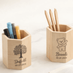 Hexagon Wooden Pen & Brush Holder – Personalised Natural Wood Desk Organiser