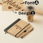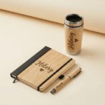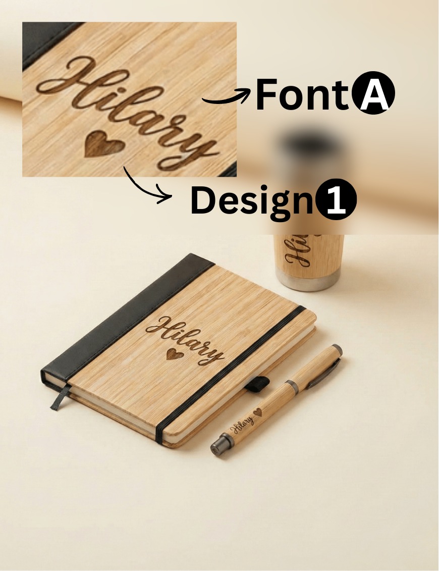 Price includes bespoke laser engraving on all three items—the journal, pen, and tumbler—with no hidden costs.