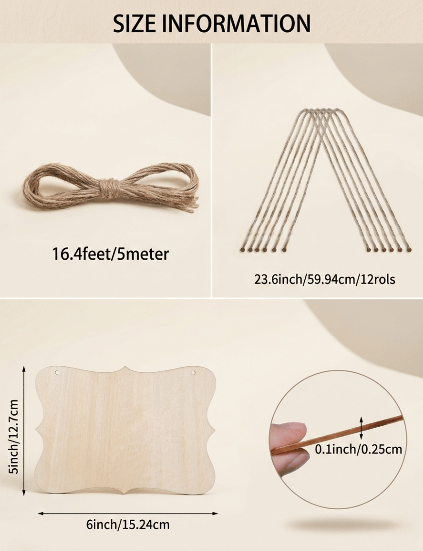 • Eco-Friendly Crafting: Made from sustainable natural wood and biodegradable jute, these plaques are a thoughtful choice for the environmentally conscious maker or decorator.